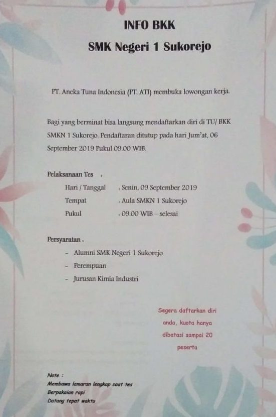 Daftar kerjasama industri smk taruna bhakti 2018/2019; Data tamatan teknik elektronika industri; 06.11.2021 · lulusan jurusan tata busana dari smk nu 01 kendal memiliki kesempatan ke depan untuk bekerja di rumah mode, butik, konveksi, tailor, garment maupun berwirausaha di bidang busana atau melanjutkan ke perguruan tinggi terkait. Pihaknya berharap, program yang dicanangkan pemerintah ini pnb siap akan menyukseskan program ini, sehingga pnb bisa menjadi contoh secara nasional. 26.10.2021 · sidang kerja proyek jurusan tkj. Tempat pkl gratis dapat gaji fee sesuai kontribusi, insentif … Dunia fashion yang semakin berkembang merupakan tantangan bagi lulusan smk jurusan tata busana untuk semakin mengembangkan kemampuan, … Data tamatan multimedia old data tamatan rekayasa perangkat lunak; Menyiapkan tamatan yang siap masuk dunia usaha dan dunia industry; Lowongan andorid, ios, backend developer april 8, 2020; Pt konimex membuka lowongan kerja maret 2021, 17 posisi … Kepada para calon pelamar diharapkan lebih seksama dan cermat saat melihat info lowongan pekerjaan yang mengatasnamakan nutrifood. Tempat magang #1 prakerin pkl wfh work from home di gaji dan di bayar dari rumah saja selama pendemi remote work kerja remote belajar dan bekerja jarak jauh untuk semua jurusan baik anak kuliah kampus universitas mahasiswa mahasiswi siswa siswi smk tkj, rpl, dkv, multimedia dan sistem informasi jaringan aplikasi (sija).
